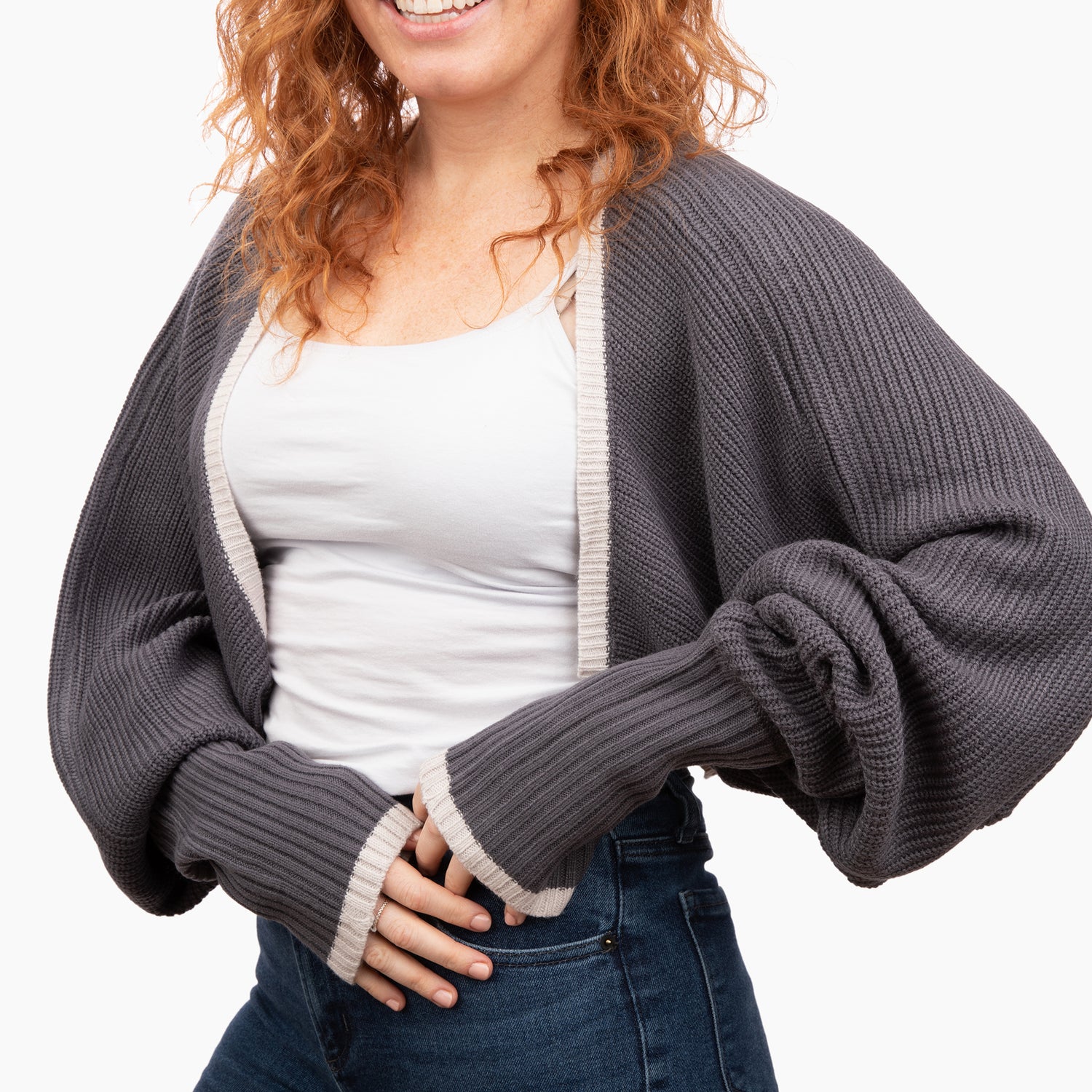 Knitted ribbed oversized cardigan with an effortlessly stylish design, shortline cut, and extra long sleeves.